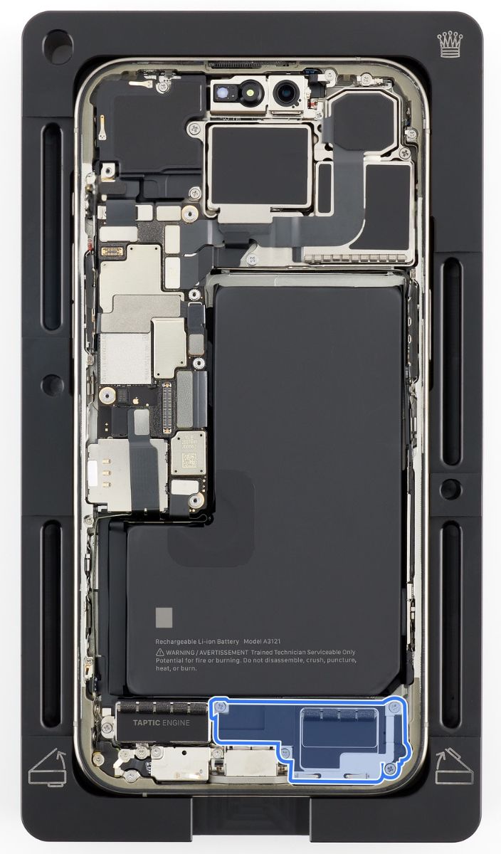 Place the enclosure in the repair tray with the USB-C connector facing the cutout.