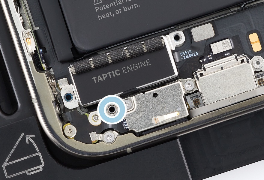 If you’re reinstalling the existing Taptic Engine, keep the battery shim attached to the Taptic Engine. If you’re installing a replacement Taptic Engine, peel the battery shim off the original Taptic Engine and adhere it to the replacement.