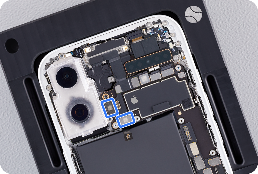 Avoid touching the camera lenses, TrueDepth camera grounding springs, or nearby parts.