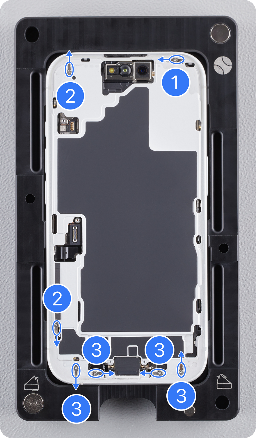 Caution: Don’t touch the TrueDepth camera assembly, grounding springs, or nearby parts.