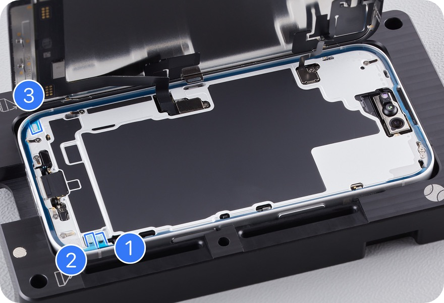 Don’t touch the TrueDepth camera assembly while adhering the display adhesive.