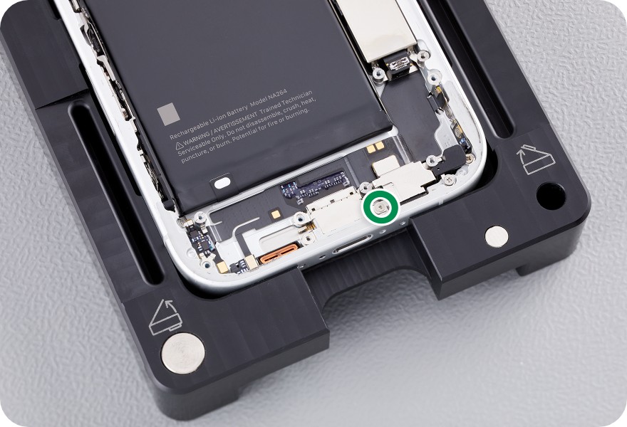 Use a torque driver and the fixed driver super screw bit to remove the two super screws from the main microphone. Set aside the screws.