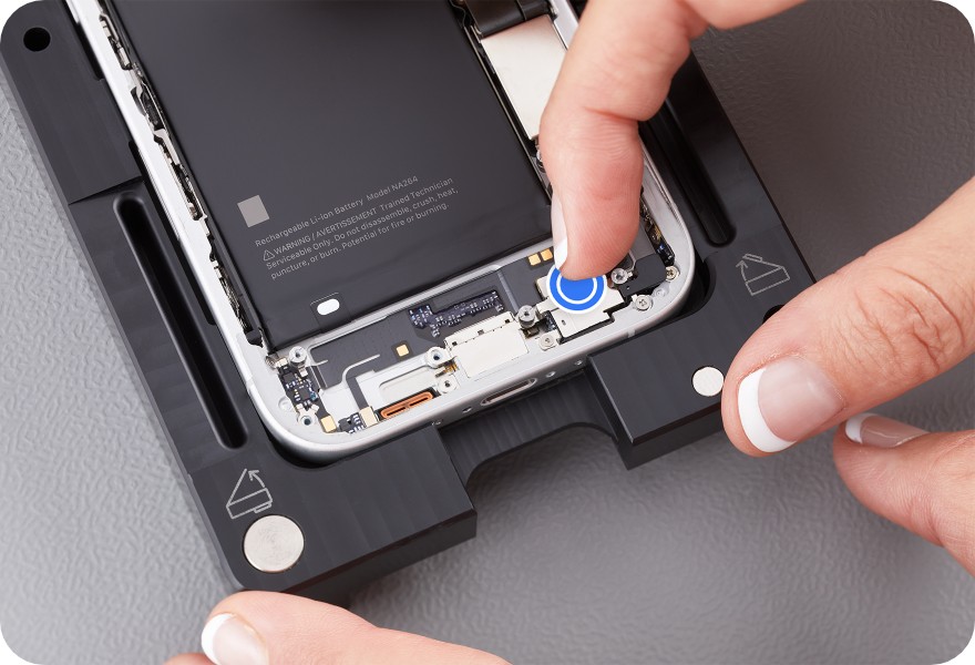 Use a torque driver and the Micro stix bit to remove the trilobe screw. Set aside the screw.