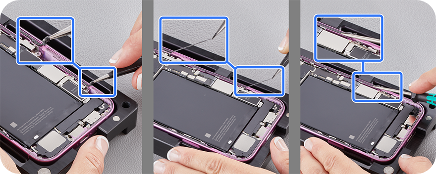 Caution: Don’t touch the camera assembly, TrueDepth camera grounding springs, or nearby parts.