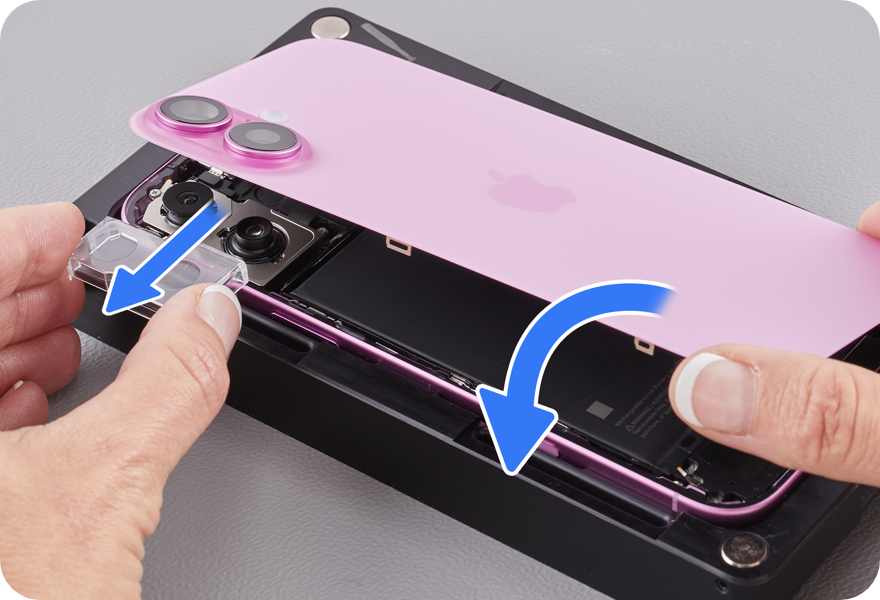 Important: If you’re installing a replacement back glass, peel the protective liner from the top and underside of it.