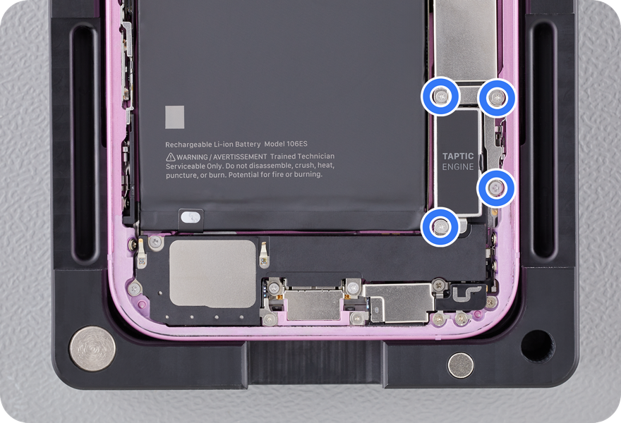 Lift the end of the Taptic Engine flex cable off the connector. Remove the Taptic Engine from the enclosure.
