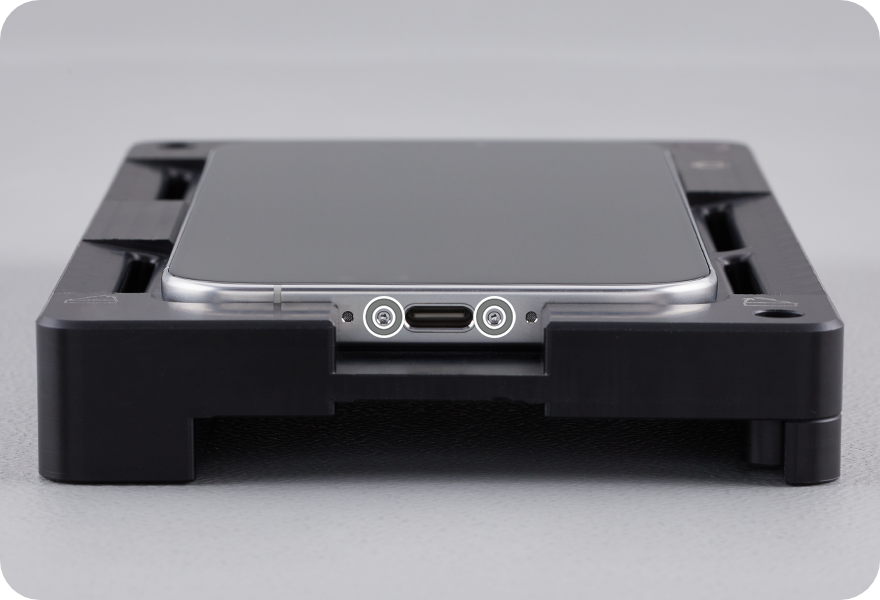 Use a torque driver and the security bit to remove two security screws, one from each side of the USB-C connector. Set aside the screws.