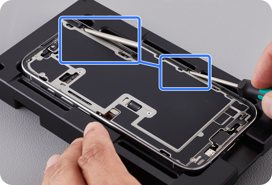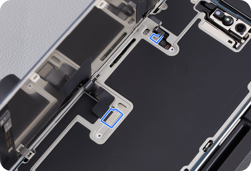 Caution: Don’t touch the TrueDepth camera assembly, grounding springs, or nearby parts.