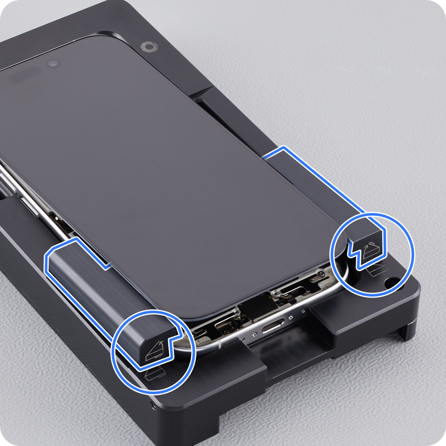 Remove the iPhone from the heated display removal fixture and place it in the repair tray.