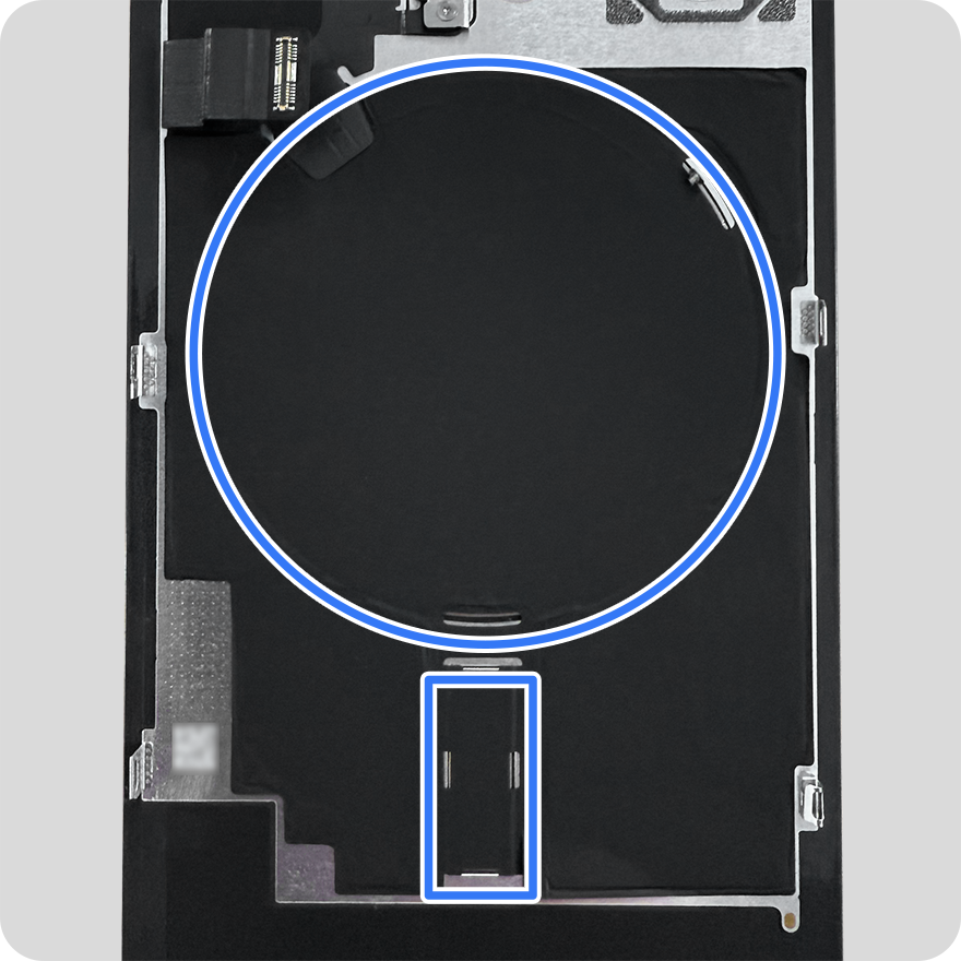 Carefully inspect the back glass for loose or extra screws and other small parts that may have attached to magnetized areas. These small parts can damage the iPhone and cause safety or functional issues when the iPhone is reassembled.