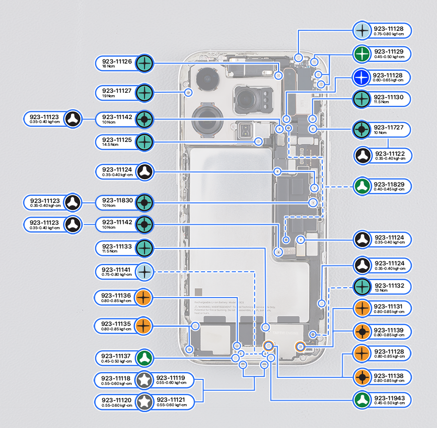 Use the teal torque driver (0.75 kgf cm) for screws marked with a teal outline.
