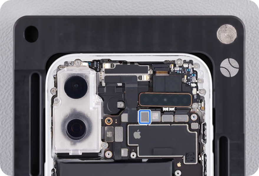 Use ESD-safe tweezers to remove the protective cover from the TrueDepth camera.