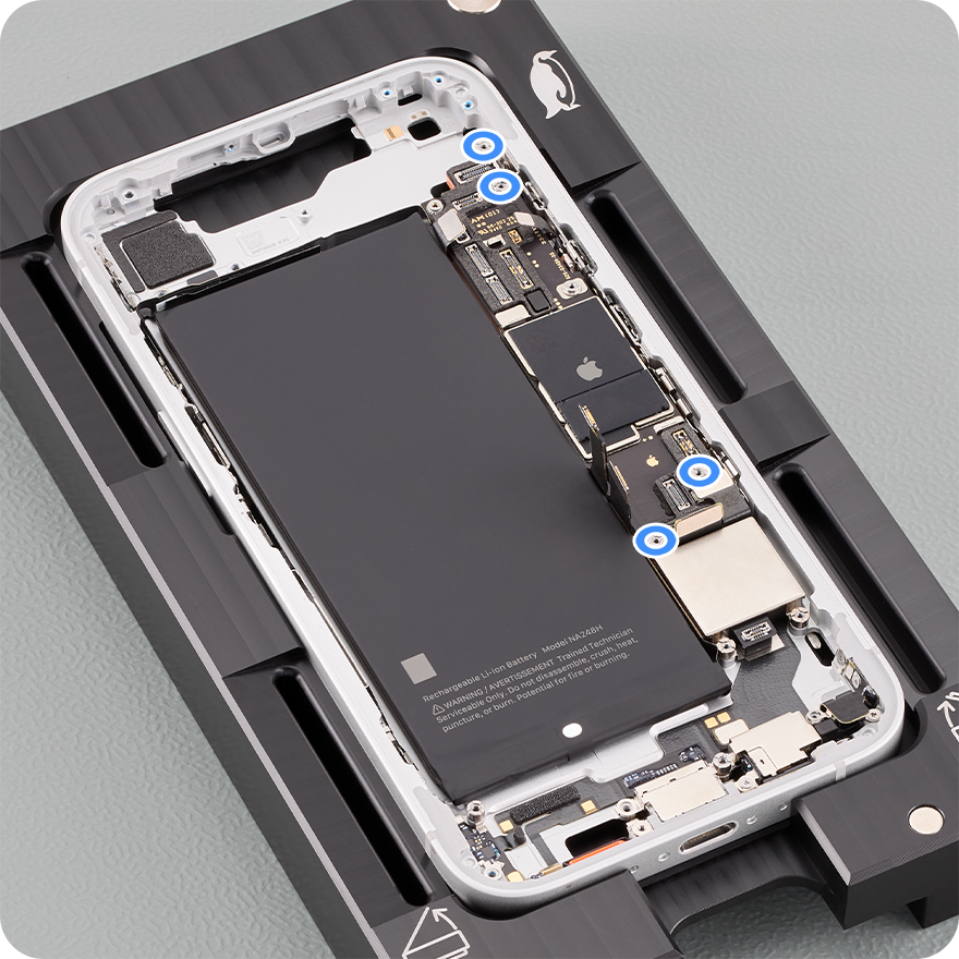 Use the 10–34 Ncm adjustable torque driver and the super screw bit to remove four the super screws from the logic board. Set aside the screws.