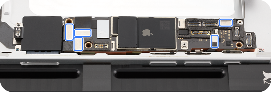 Caution: Don't trap the flex cables under the logic board.