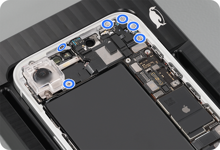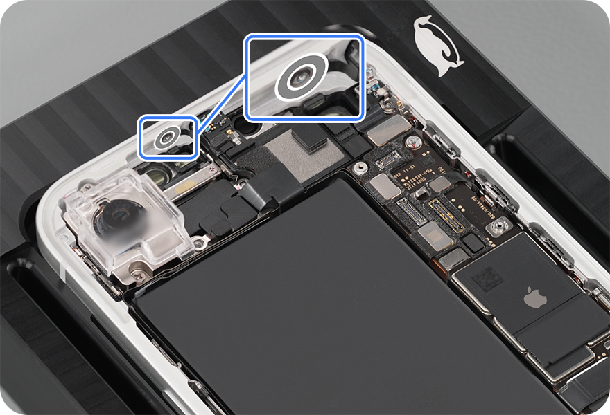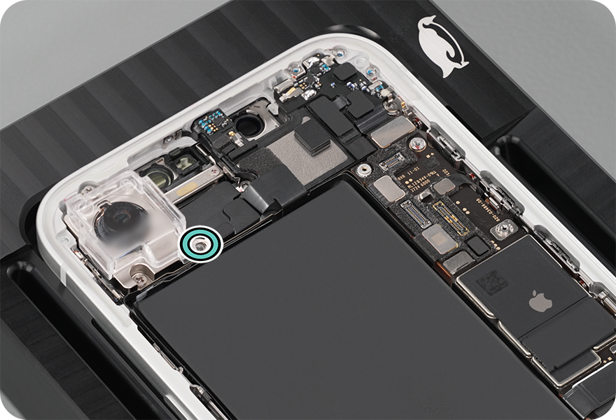 Use a torque driver and the super screw bit to remove the super screw from the camera spacer. Set aside the screw.