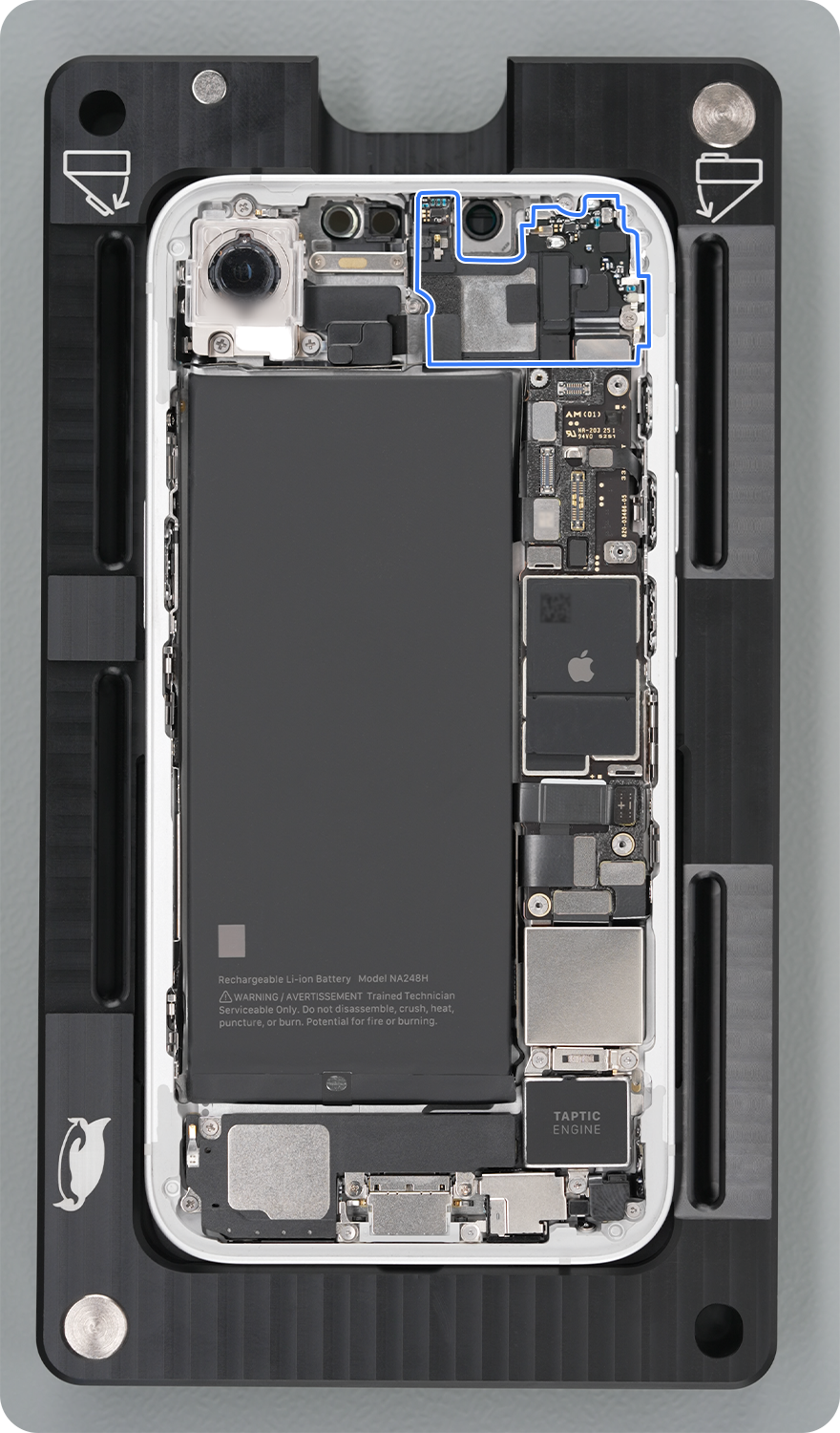 Move the camera flex cable aside to position the replacement top speaker in the enclosure.