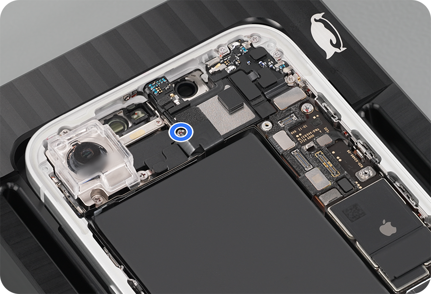 Set the torque value on the 10–34 Ncm adjustable torque driver to 14.5 Ncm. Use the adjustable torque driver and adjustable torque driver JCIS bit to install one new crosshead screw (923-12363) into the camera.