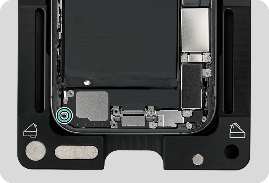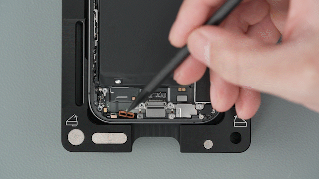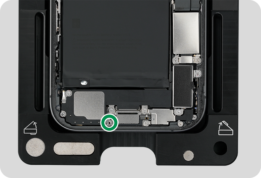 Caution: You must disconnect the battery flex cable first to ensure that the iPhone stays turned off.