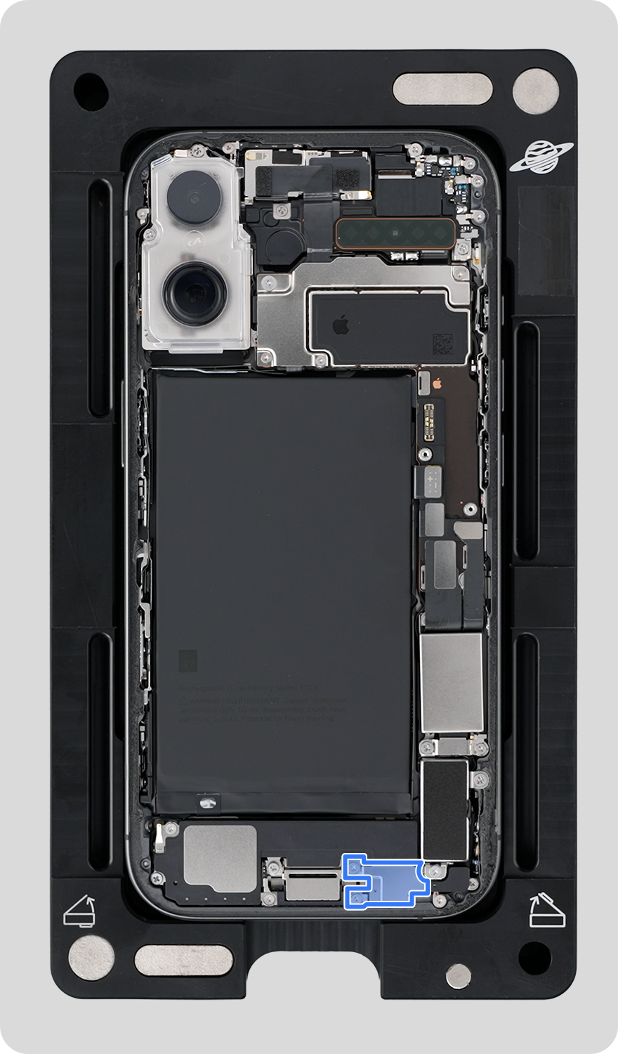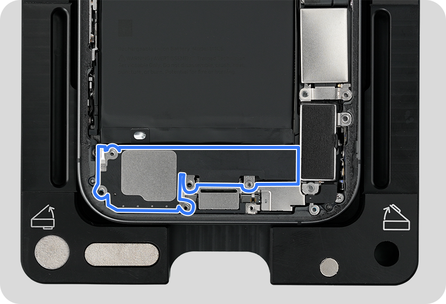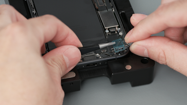 Caution: You must disconnect the battery flex cable first to ensure that the iPhone stays turned off.
