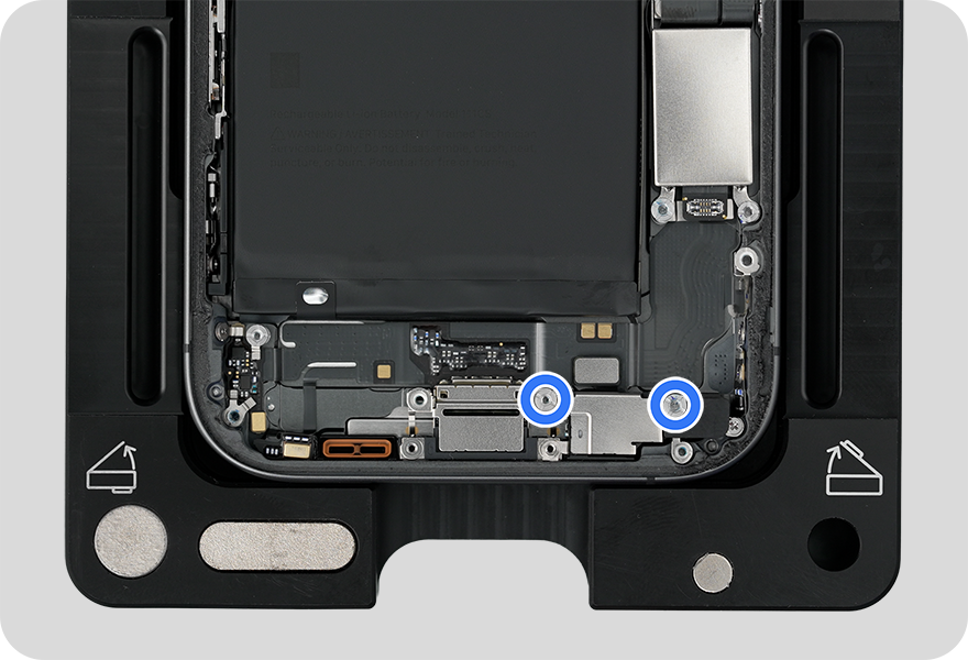 Never reinstall a screw after it has been removed. Install only new screws. Most iPhone screw grooves are covered in adhesive that can’t be reused. Discard screws according to your local recycling guidelines.
