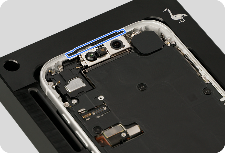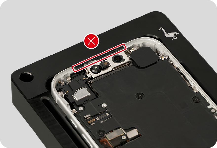 Don’t touch the front camera assembly, grounding springs, or nearby parts.