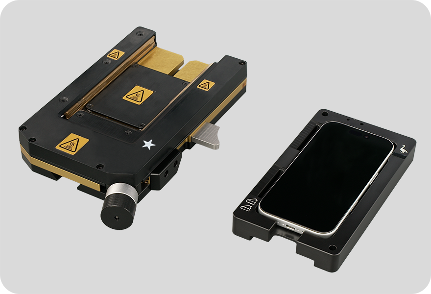 Use the heated display removal fixture to heat the display adhesive. Refer to the Heated Display Removal Fixture Operating Manual for instructions.