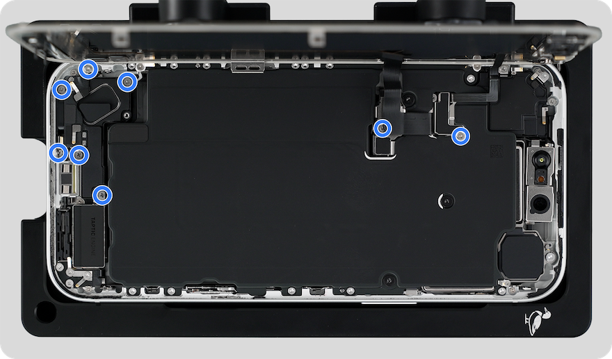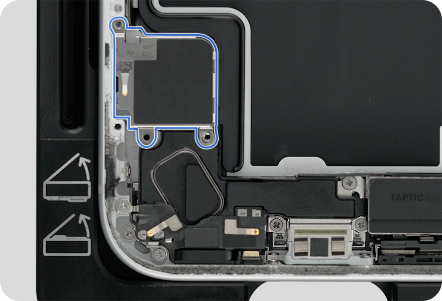 Use the blue torque driver and crosshead bit to install two new crosshead screws (923-13946) into the bottom speaker.