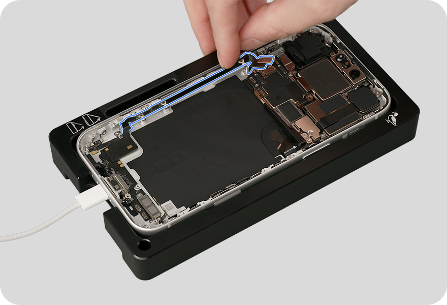 Break the adhesive bond between the USB-C connector and enclosure. Then remove the USB-C connector from the enclosure.
