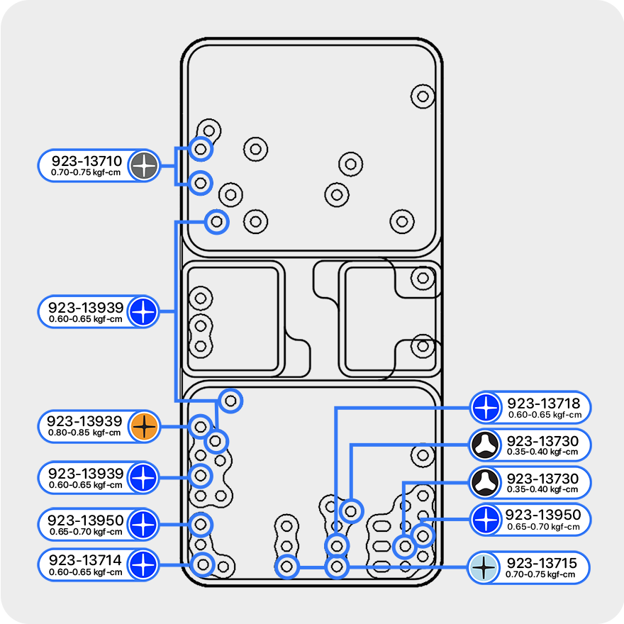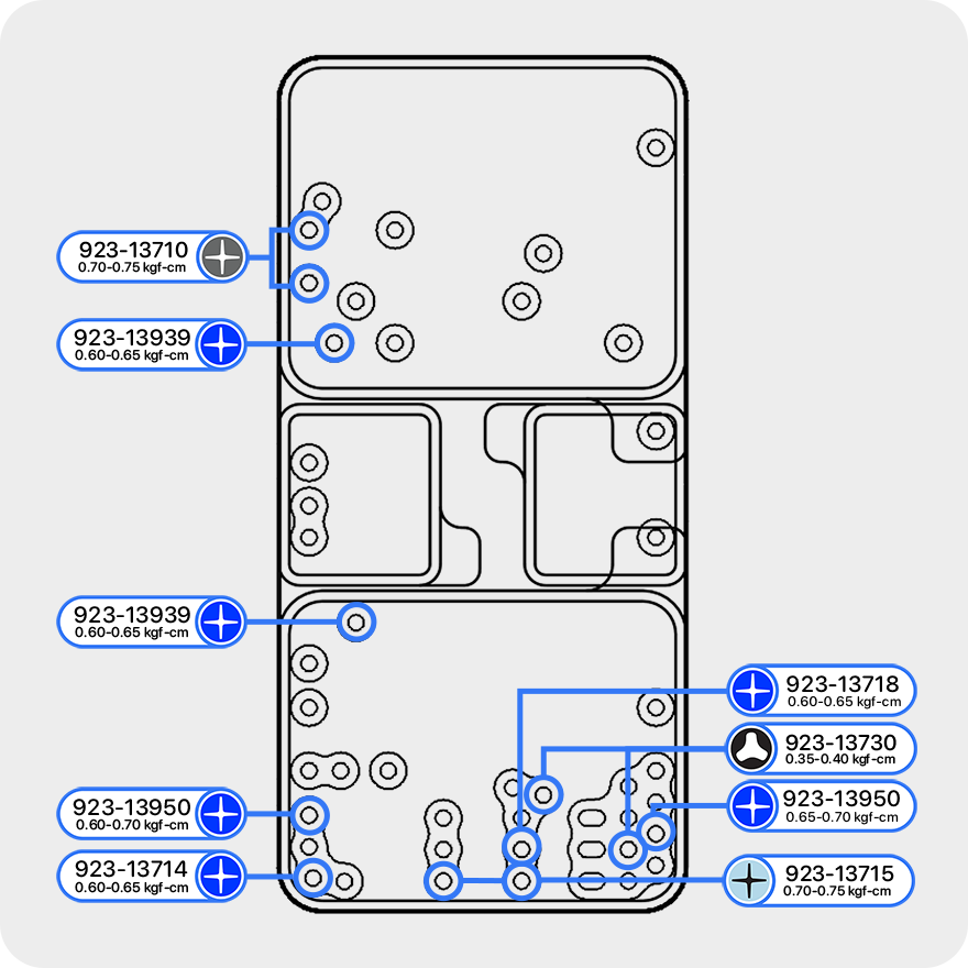 Use a torque driver and crosshead bit to remove 13 crosshead screws from the USB-C connector. Then complete the entire step before continuing to the next step.