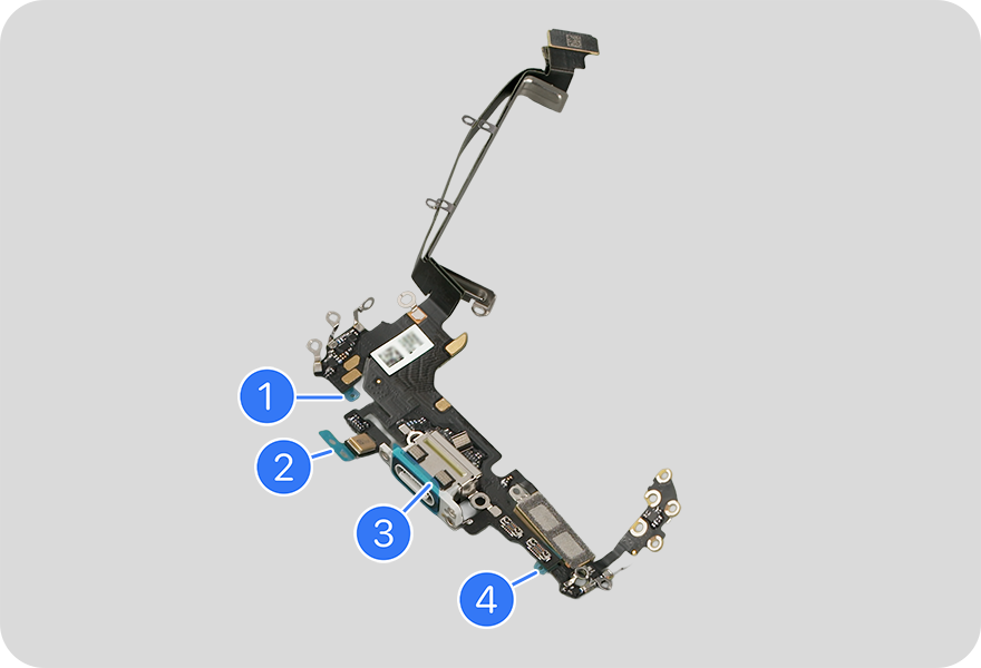 If you’re installing a replacement USB-C connector, use the ESD-safe tweezers to peel three of the four adhesive liners (1, 3, and 4) from the replacement part.