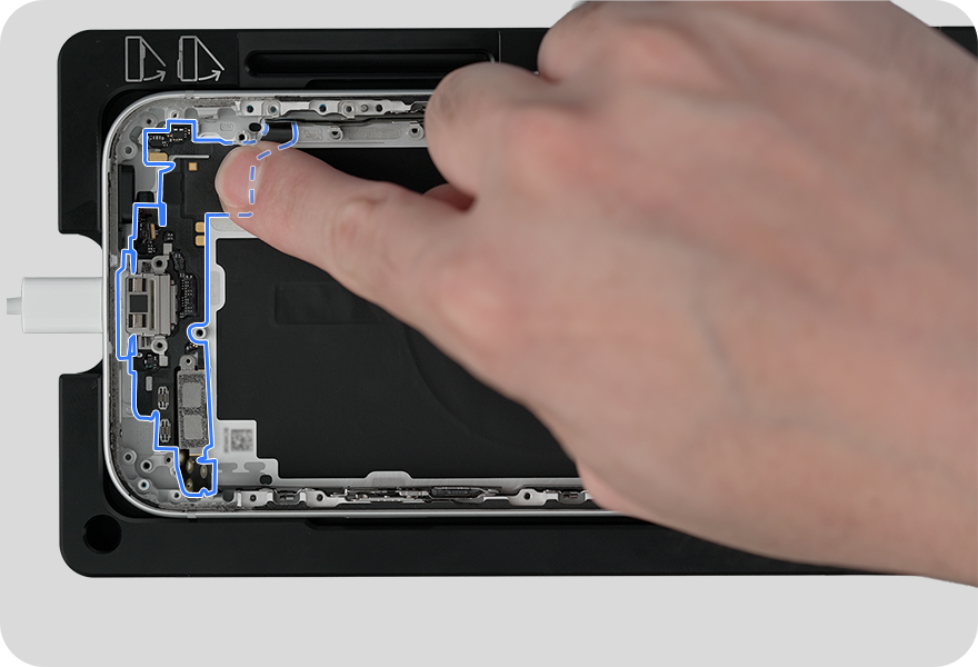 Lift the ends of the two stacked USB-C connector flex cables from the connectors.