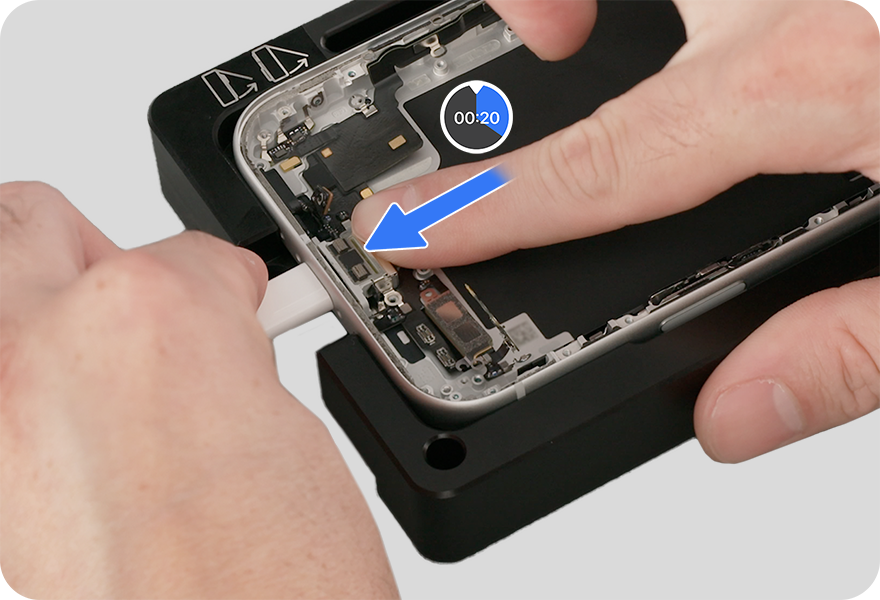 Peel the battery spacer from the enclosure and set it aside for reassembly.