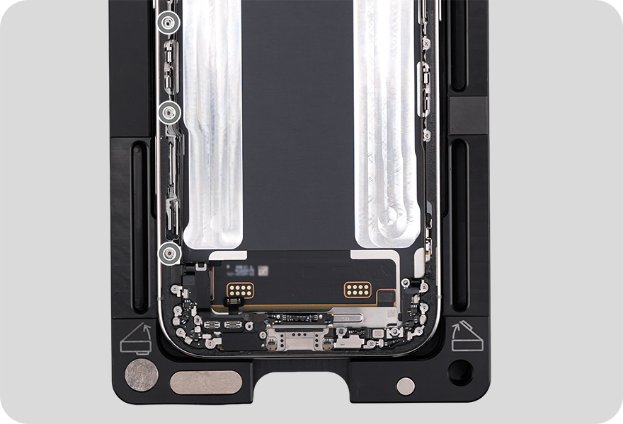 Use the gray torque driver and crosshead bit to install three new crosshead screws (923-13687) into the USB-C connector.