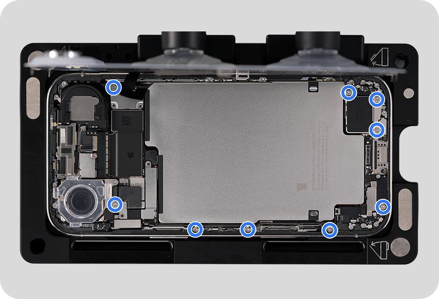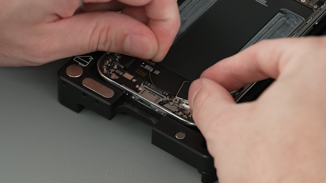 Caution: You must disconnect the battery flex cable first to ensure that the iPhone stays turned off.