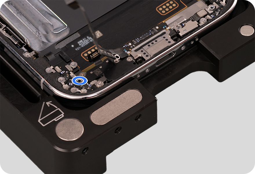 Use the teal torque driver and crosshead bit to install one new crosshead screw (923-13974) into the auxiliary microphone.