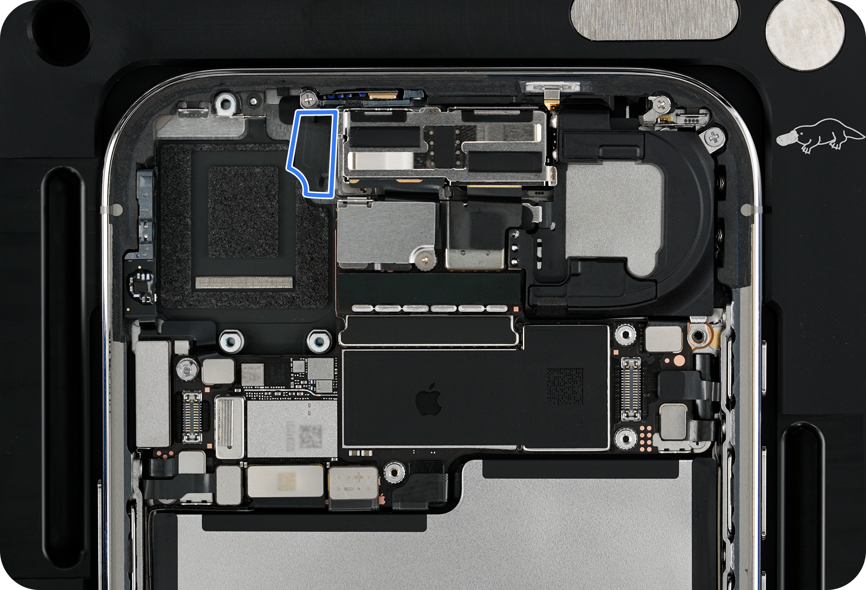 Caution: You must disconnect the battery flex cable first to ensure that the iPhone stays turned off.