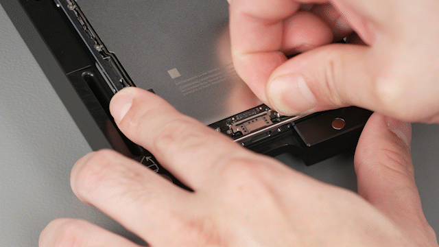 Use the black stick or adhesive cutter to separate the Taptic Engine flex cable from the USB-C connector flex cable. Then complete the entire step before continuing to the next step.