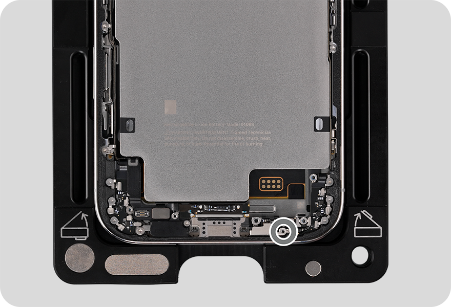Caution: You must disconnect the battery flex cable first to ensure that the iPhone stays turned off.