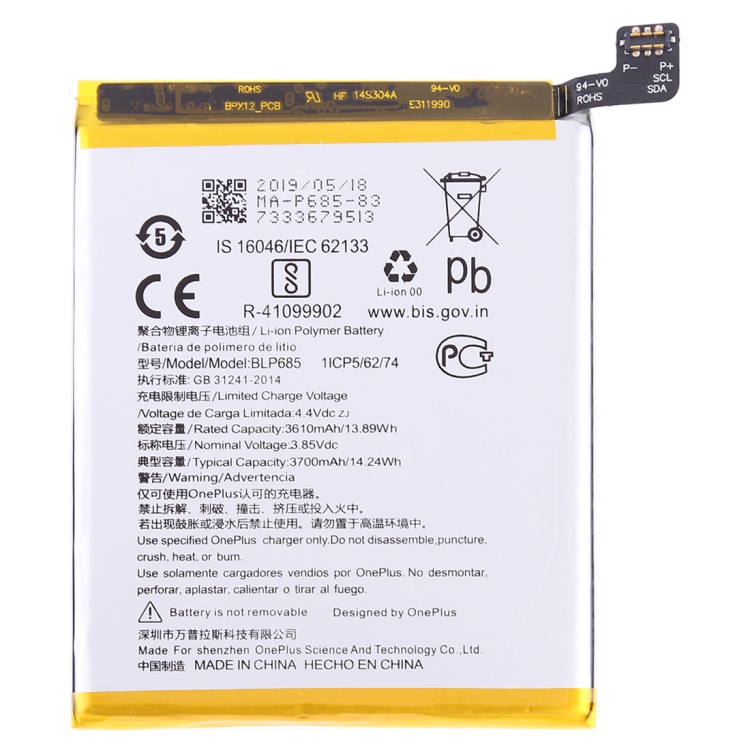 3610mAh BLP685 for OnePlus 6T Li-Polymer Battery, For OnePlus 6T