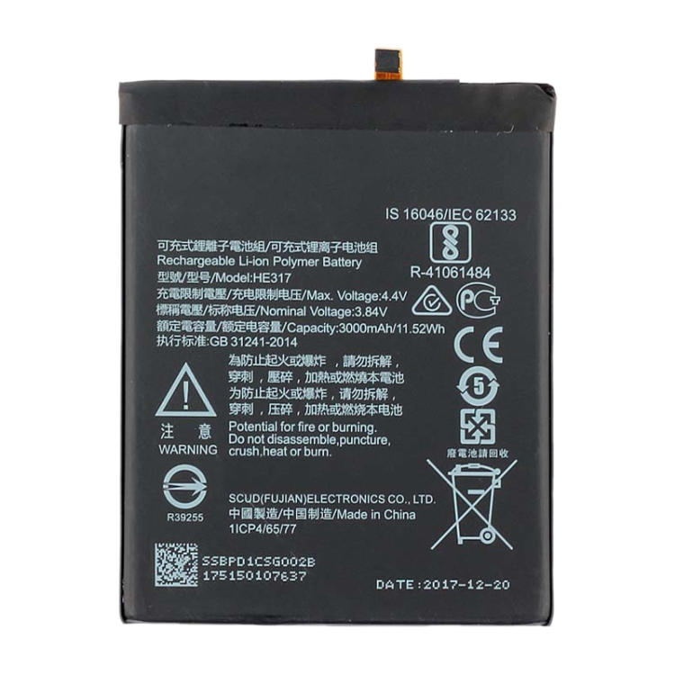 HE317 Li-ion Polymer Battery for Nokia 6 TA-1000 TA-1003 TA-1021 TA-1025 TA-1033 TA-1039, For Nokia 6 (HE317)